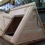 В первом варианте - домики без обработки антисептиками и лаком. Такие домики для колодца открывают простор для творчества в выборе цветового решения. Вы сможете покрасить такой колодезный домик в любой понравившийся Вам цвет. А может быть захотите оставить естественный вид дерева, просто покрыв домик тёмным или светлым лаком для дерева.